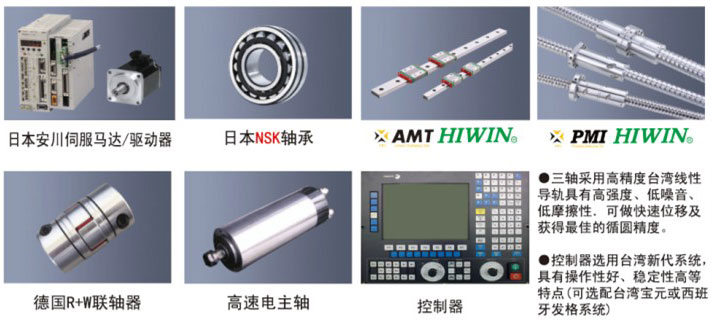 ●三軸采用高精度臺灣線性導軌具有高強度、低噪音、低摩擦性.可做快速位移及獲得最佳的循圓精度。